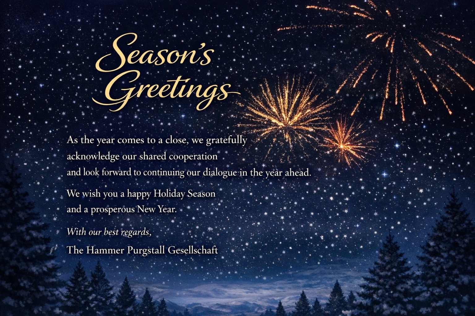 Unser aufrichtiges Mitgefühl gilt seiner Familie, seinen Freunden und allen, die ihm nahestanden. Die Hammer-Purgstall-Gesellschaft wird sein Andenken in Ehren bewahren.